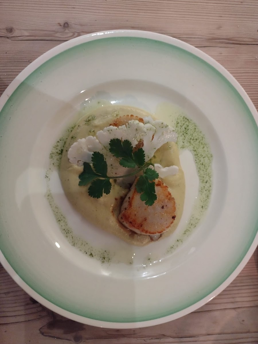 Scallops on a Bed of Curried Cauliflower Puree